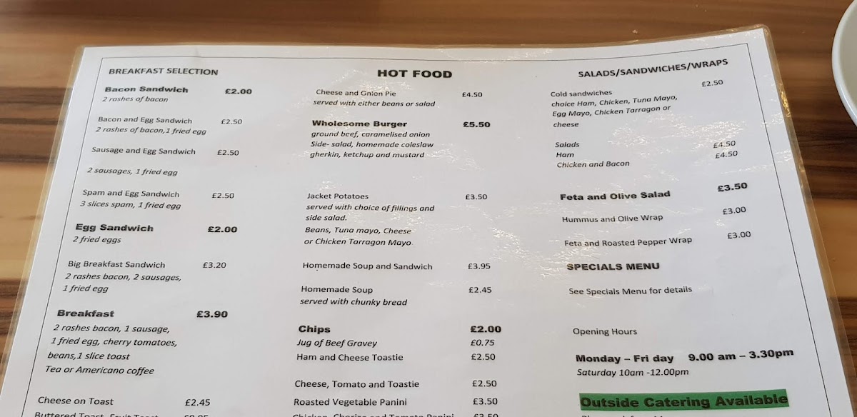 Other delightful items on the menu include the famed Wholesome Burger, Jacket Potatoes, and heartwarming Homemade Soup. A current favorite is the Cheese and Bacon on Toast which has left patrons like Carrol Ashton in love with the cafe, declaring it a 'local gem.' And let’s not forget the indulgence of a Jug of Beef Gravy that makes every dish comforting and robust.
